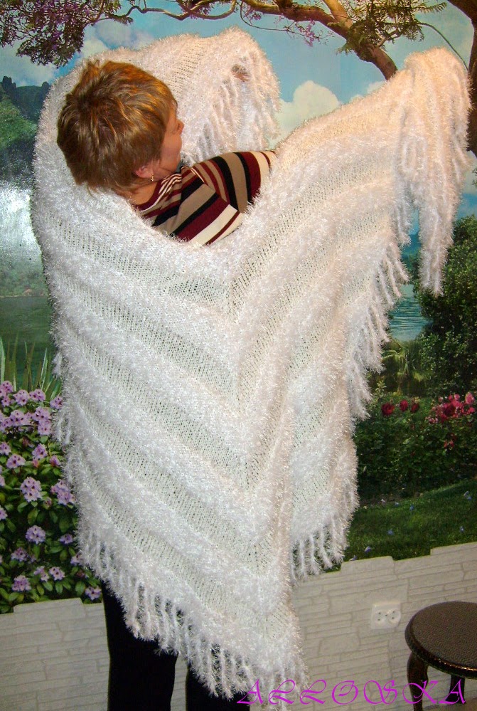 Добрый день друзья и гости моего блога! Связалась шаль из ниточек "травка", белая ангора 70%, буклированный хлопок "Камтекс", мне нравится. Модель,моя хорошая знакомая, любезно согласилась сфотографироваться))))